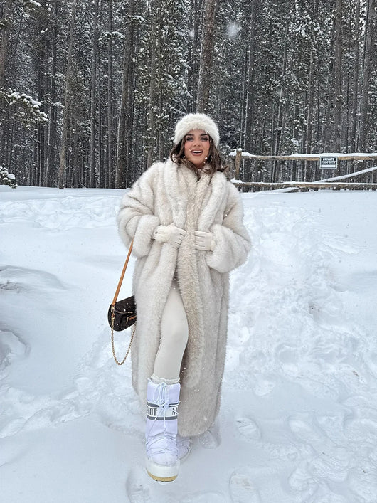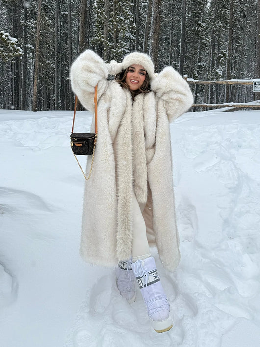 Discover timeless elegance with the Longline Georgia Faux Fur Coat, crafted to feel like a cherished heirloom piece. Available in rich deep chocolate or serene soft beige, this sophisticated coat features a luxurious plush faux-fur exterior with refined clean lines that elongate your silhouette. Layer it effortlessly over any outfit to instantly elevate your look—exuding an air of understated luxury and polished composure. Cruelty-free and undeniably chic, this is the investment piece that transforms your everyday wardrobe into something extraordinary.